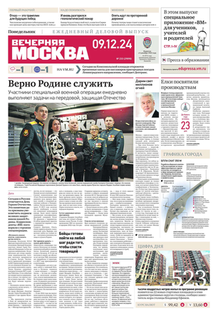«Вечерняя Москва» — ежедневная российская вечерняя газета, старейшее из вечерних изданий в России, учрежденное в 1923 году. Выходит пять дней в неделю, кроме субботы и воскресенья. Отличается тем, что рассказывает о событиях еще не завершившегося дня. Оперативно освещает хронику и особенности жизни Москвы, охватывает все слои общества и большинство профессиональных и возрастных групп читателей.Издание представлено тремя выпусками – утренним ежедневным, вечерним (выходит три раза в неделю), еженедельным (выходит по четвергам).