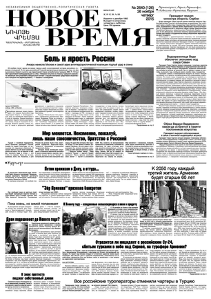 Общественно- политическая газета “Новое Время” была создана в 1992-м году и за 20 лет своего существования сумела заслужить среди армянских читателей право называться лучшей русскоязычной газетой в РА. Помимо сугубо политических тем издание обращается также к вопросам социальным, научным, культурным. Внимание уделяется и проблемам армянской диаспоры…