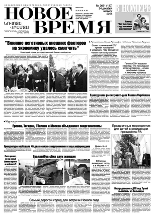 Общественно- политическая газета “Новое Время” была создана в 1992-м году и за 20 лет своего существования сумела заслужить среди армянских читателей право называться лучшей русскоязычной газетой в РА. Помимо сугубо политических тем издание обращается также к вопросам социальным, научным, культурным. Внимание уделяется и проблемам армянской диаспоры…